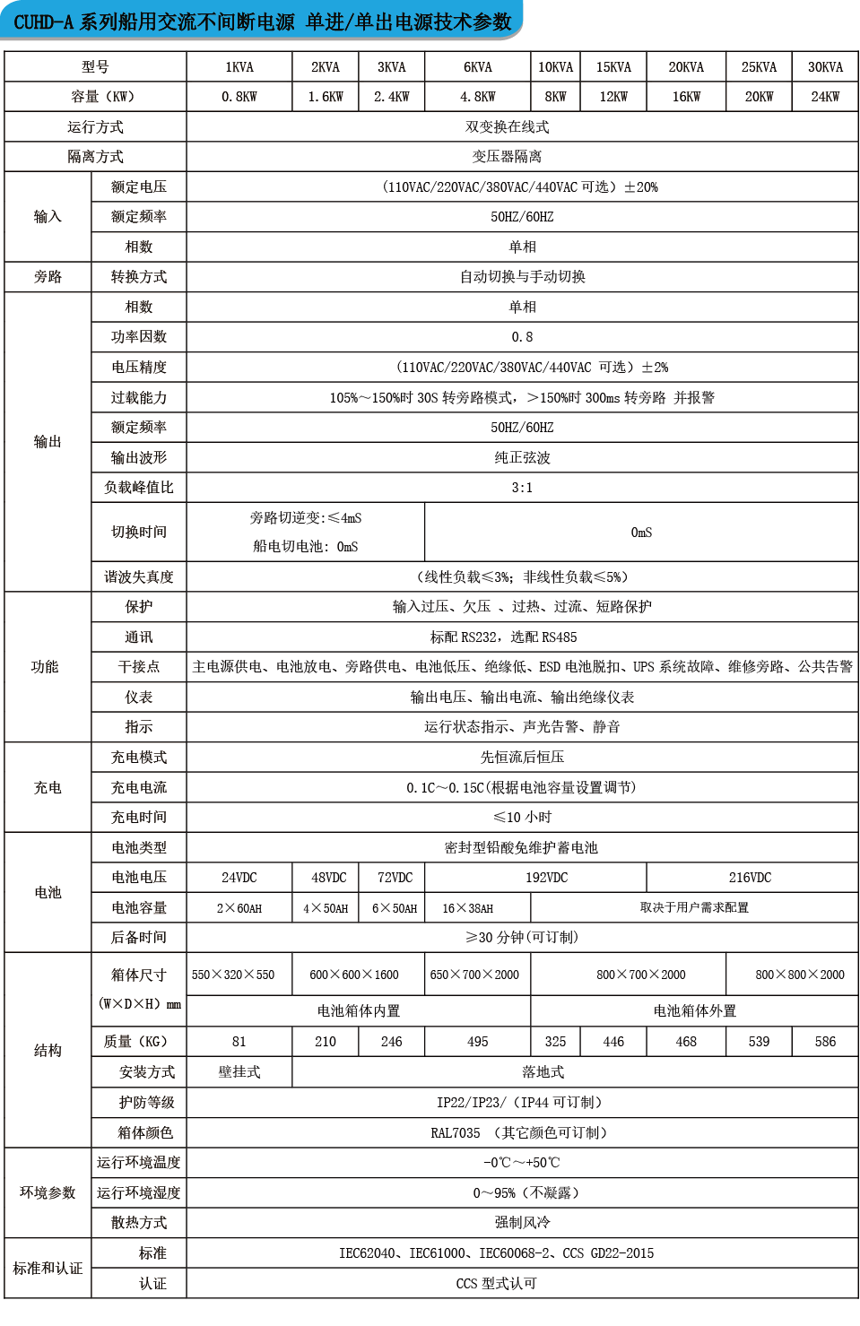 全系列交流UPS電源均已獲得中國船級社型式認可。
